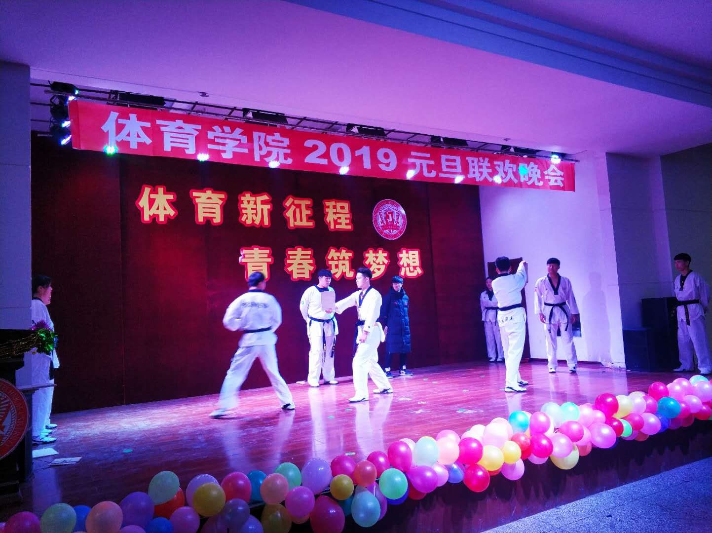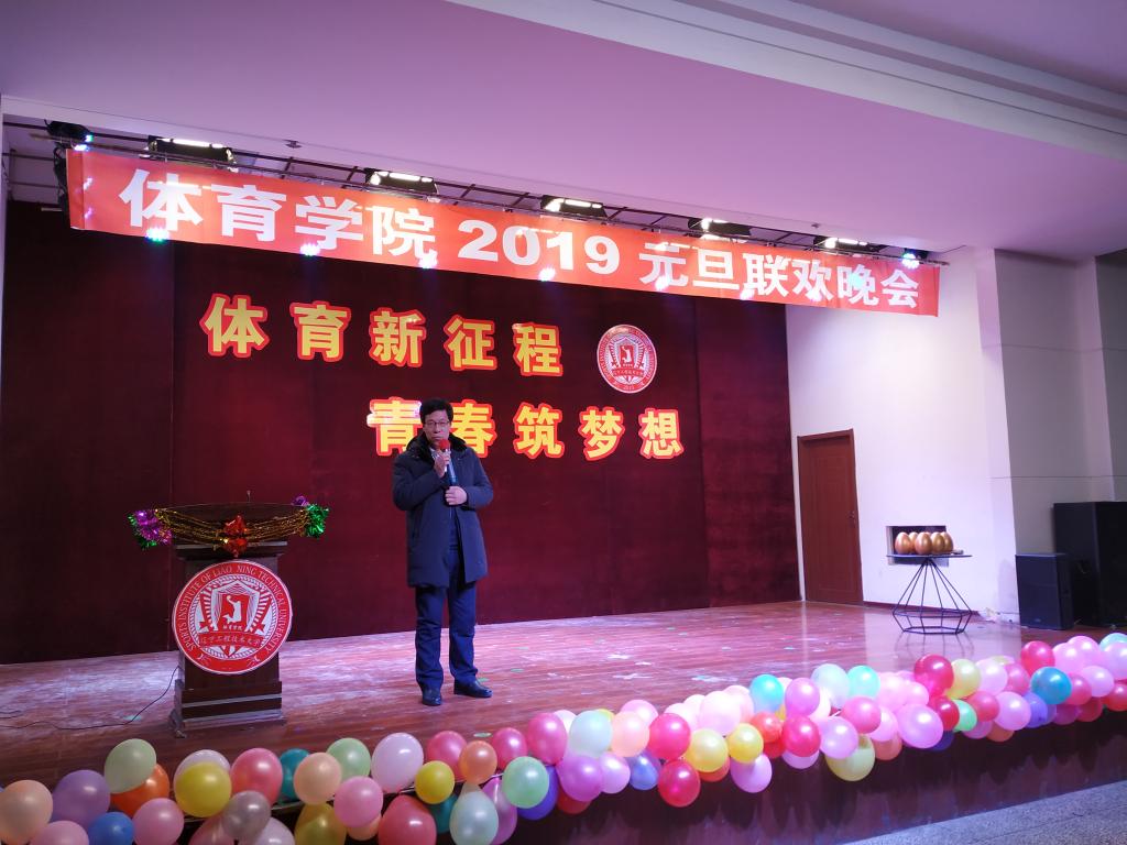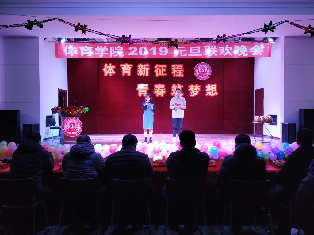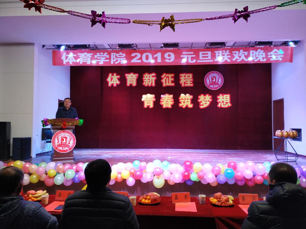 “体育新征程 青春筑梦想”2019元旦联欢晚会在中华路校园大学生活动中心隆重举行。学院党总支书记韩雪峰、副院长刘大明、场馆中心主任杜江等学院领导老师、辅导员莅临晚会现场。