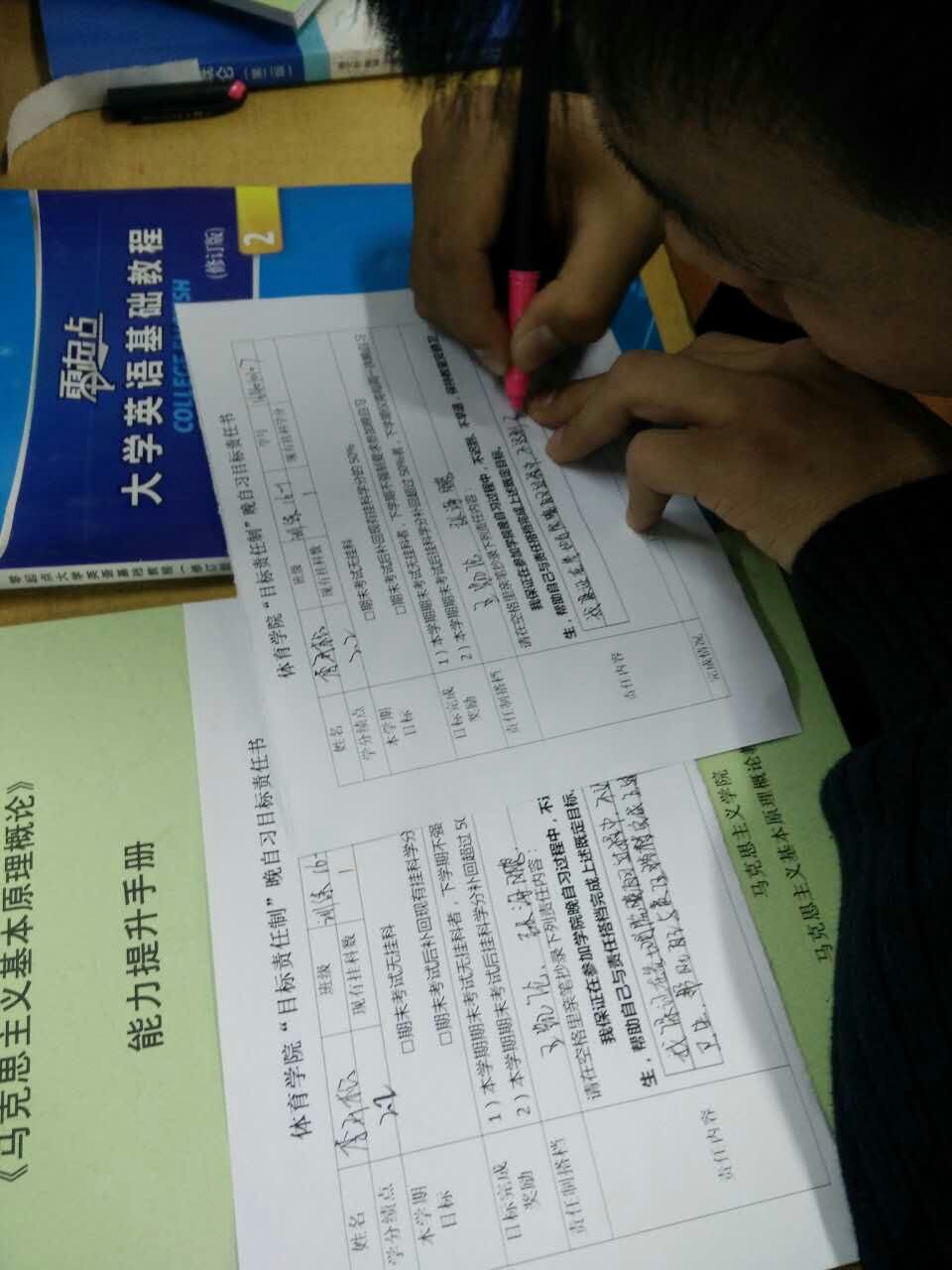 “目标责任制”晚自习在新华楼201教室正式开始。学院15、16两个年级学生和14级挂科超过3科的学生全员参加,由学院学生工作部主任李叙瑶老师全程陪同。晚自习采用指纹机打卡签到、签退,学院每两周将在校园网、学院网站、学院微平台、家长微信群公布一次考勤情况。2小时晚自习期间,学生手机均统一上交,以保证自习质量。在第一天的自习开始前,学生们统一签署了学院下发的《17live