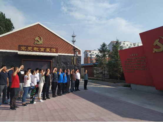 在教育基地的广场上,全体党员重温入党誓词,立志不忘初心,坚守党性,坚定目标,为祖国的教育事业和体育发展不断奋斗进取。