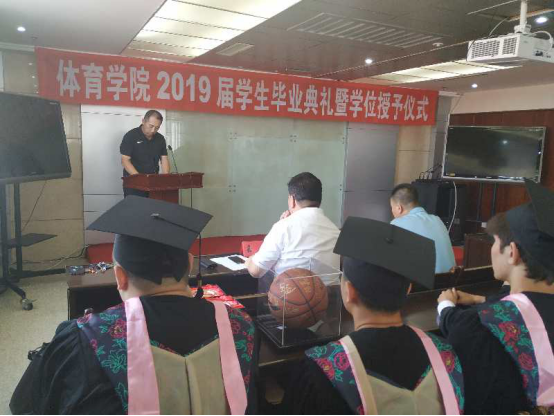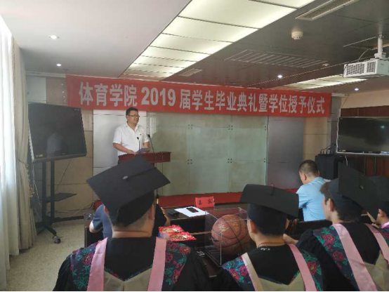 党总支书记韩雪峰、体育场馆管理中心主任杜江、教育科科长毕业班班导师王雷出席典礼,学院教师代表、辅导员、学院2019届全体毕业生及在校生部分代表参加典礼。毕业典礼由学院学生工作部主任李叙瑶主持。