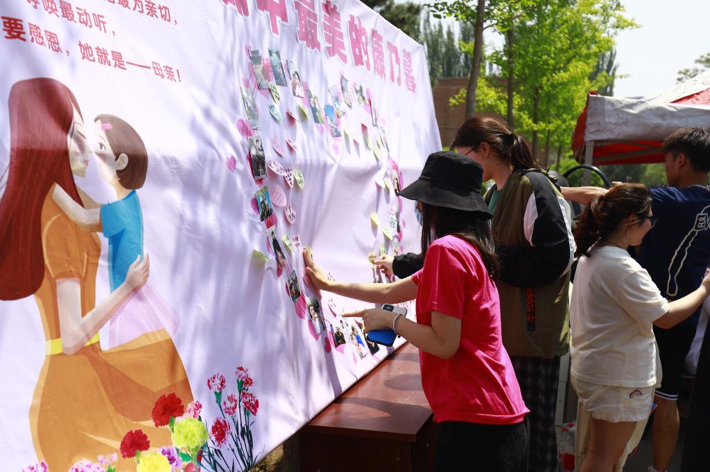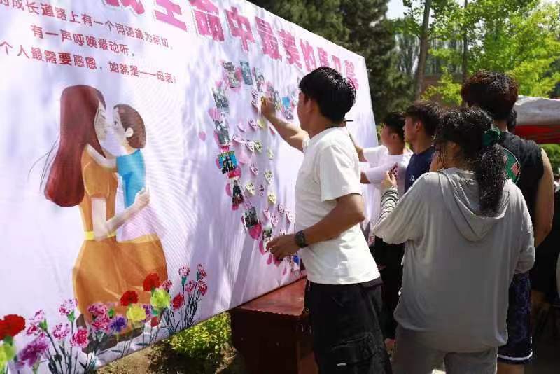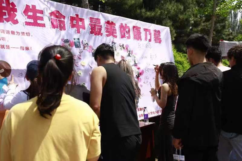 在中华路校园开展了“致我生命中最美的康乃馨 ”母亲节特别活动。本次活动通过学生们展示出与母亲的合影,并手写对母亲的祝福,来表达心中的情感。在精心布置的活动展板上,贴满了学生和自己母亲的温馨合照,虽然不能在这一天陪在母亲身边,但是学生们用这种形式表达着对母亲无尽的爱。数十名来自各个学院的学生也纷纷驻足,在展板上书写下了对母亲温暖的祝福。现场采访中,许多同学都表示,平时羞于对父母表达情感,但一定会在大学努力成长,争取成为父母的骄傲。