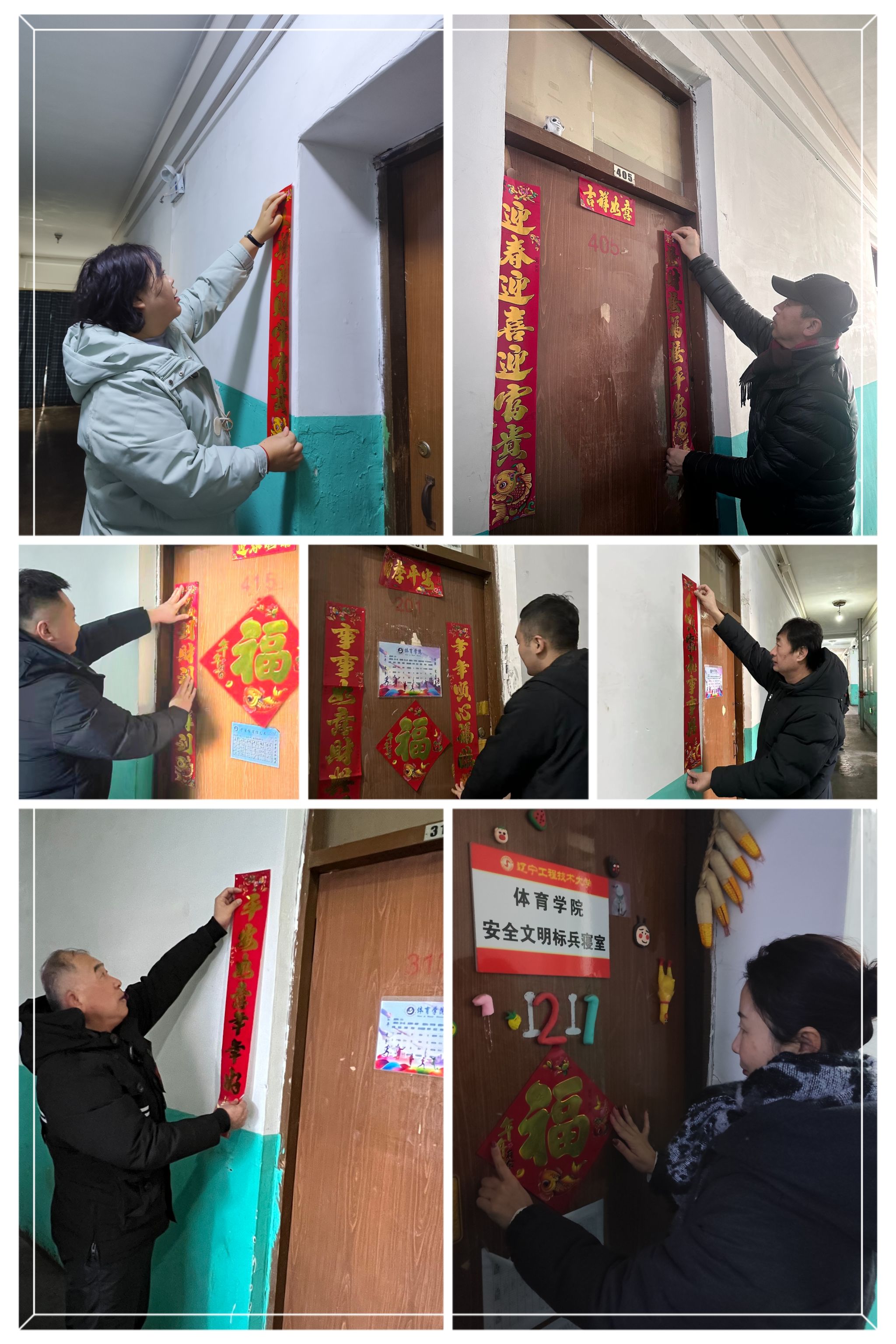 党委副书记李叙瑶组织全体辅导员、班导师共同走访学生寝室,深入细致了解学生离校情况,并为学院所有学生寝室贴上新春对联和福字。