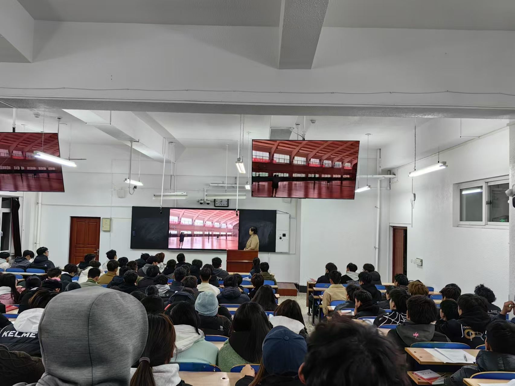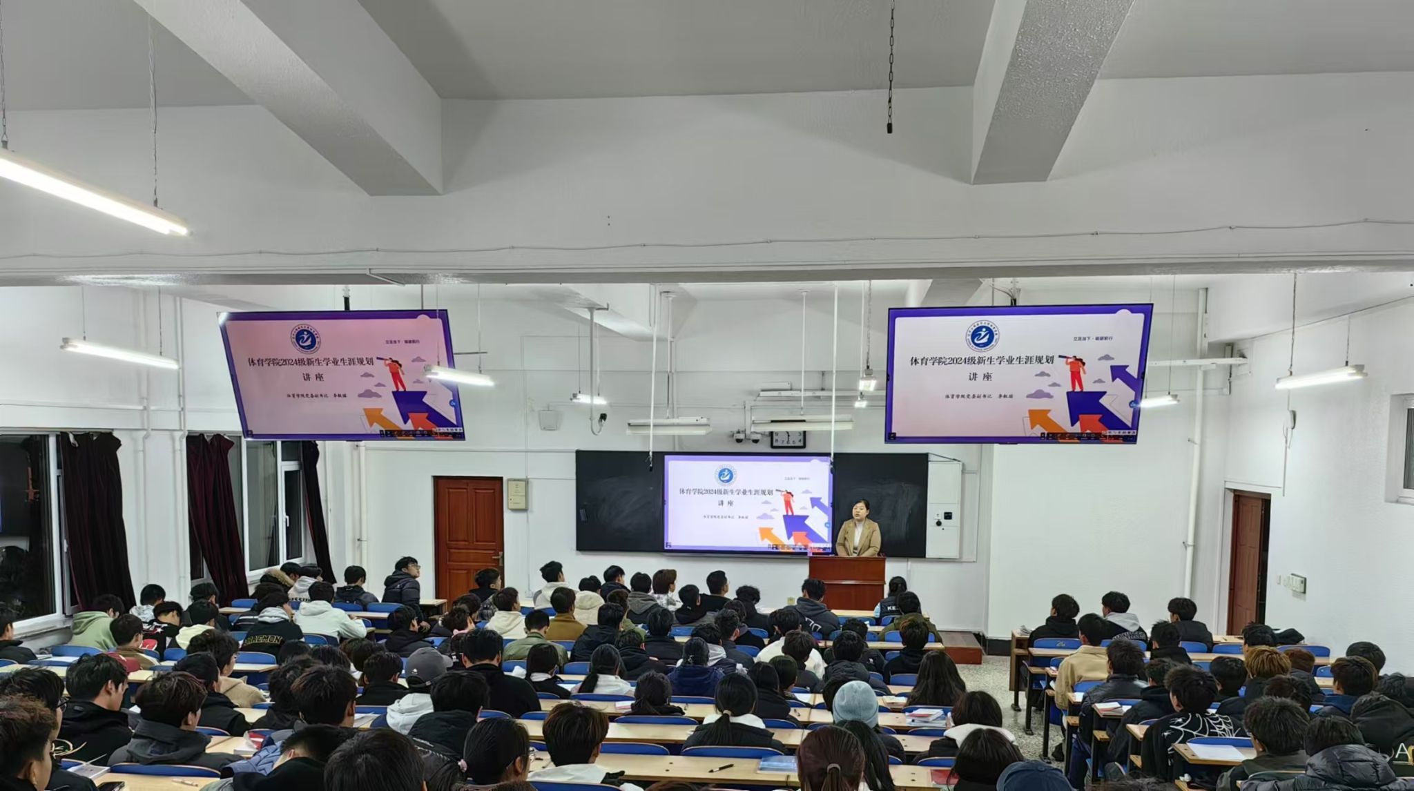 党委副书记李叙瑶主讲,全体新生参加讲座。