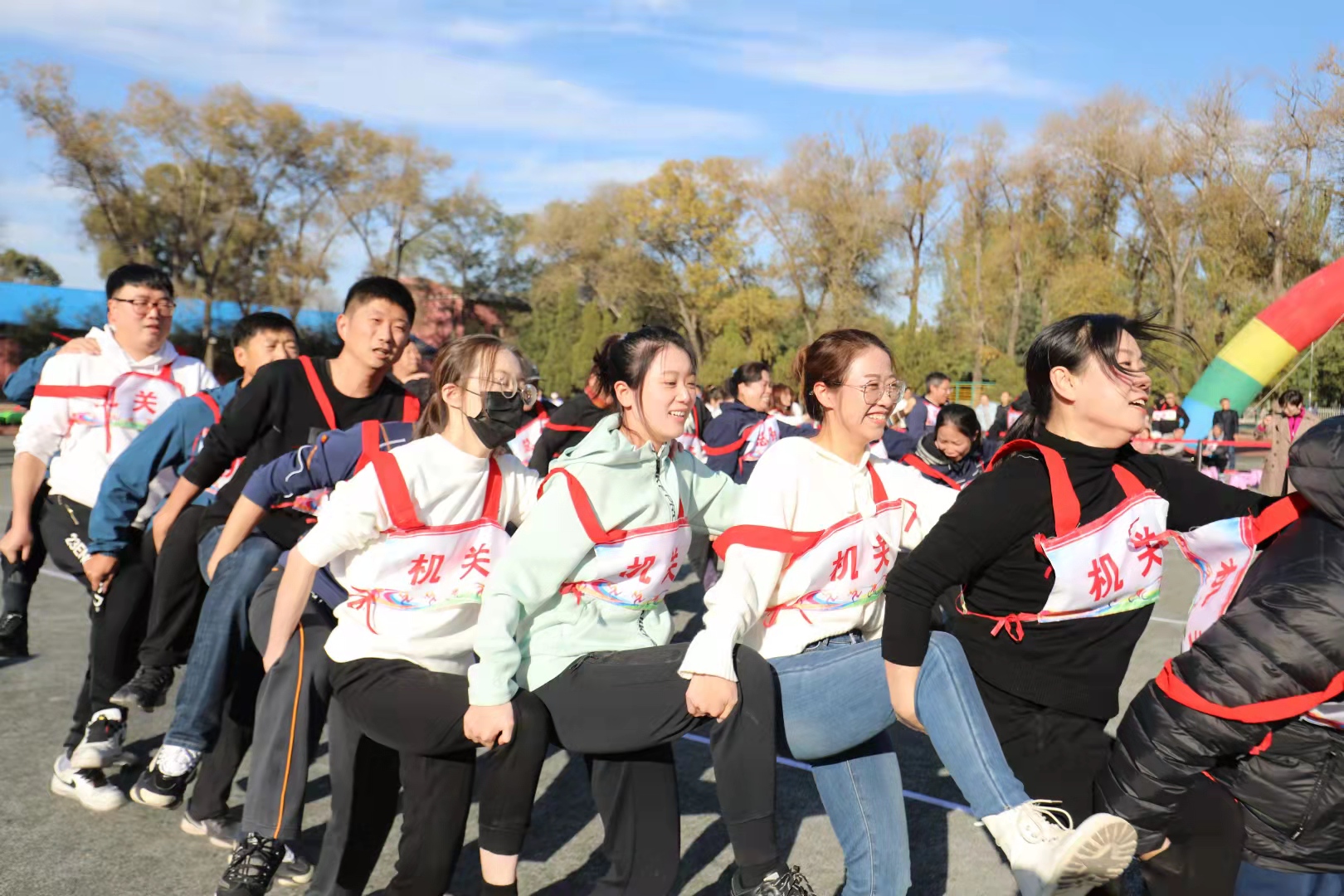 运动会前,学校成立了教职工趣味运动会组委会,精心设置了“车轮滚滚”等8个参赛项目,项目寓娱乐性、技巧性、协作性于一体,吸引了598名教职工参赛,参赛人次达2100人次。参赛人员奋勇争先,观看比赛的领导和教职工不时为运动员加油助威,赛场上争夺热烈,笑声、喝彩声阵阵。