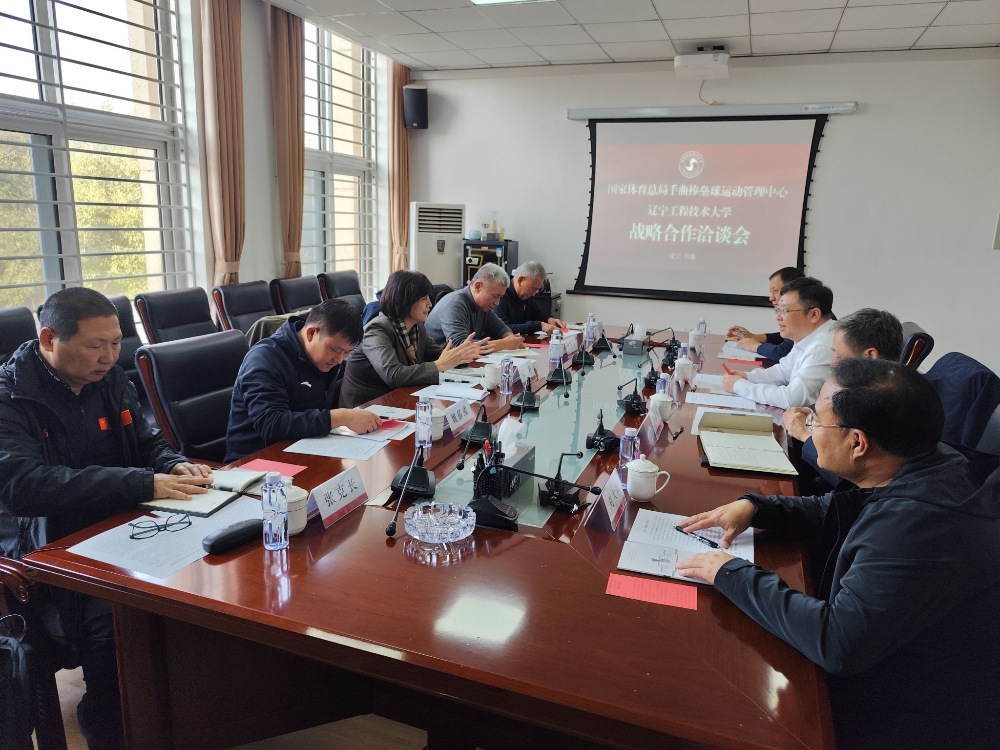 欢迎王涛主任一行到校洽谈合作。他表示,近年来在省、市的大力支持和学校的布局推动下,辽工程体育事业取得长足发展,特别是手球项目取得中国大学生手球锦标赛等多项国家级赛事优异成绩,更加振奋了师生昂扬向上的奋斗士气。王涛主任提出,我国的高等院校是汇聚各类人才精英的团体,是体育事业发展不可忽视的重要力量,中心和辽工程未来在专业人才培养、科研成果转化、体教融合探索等多方面具备合作空间和发展前景,期待双方能够携手共进,为国家手球项目可持续发展、为实现建设体育强国目标提供不竭动力。